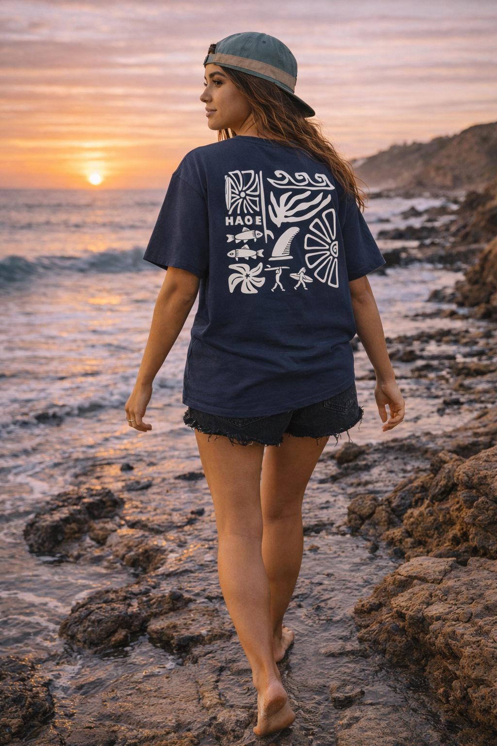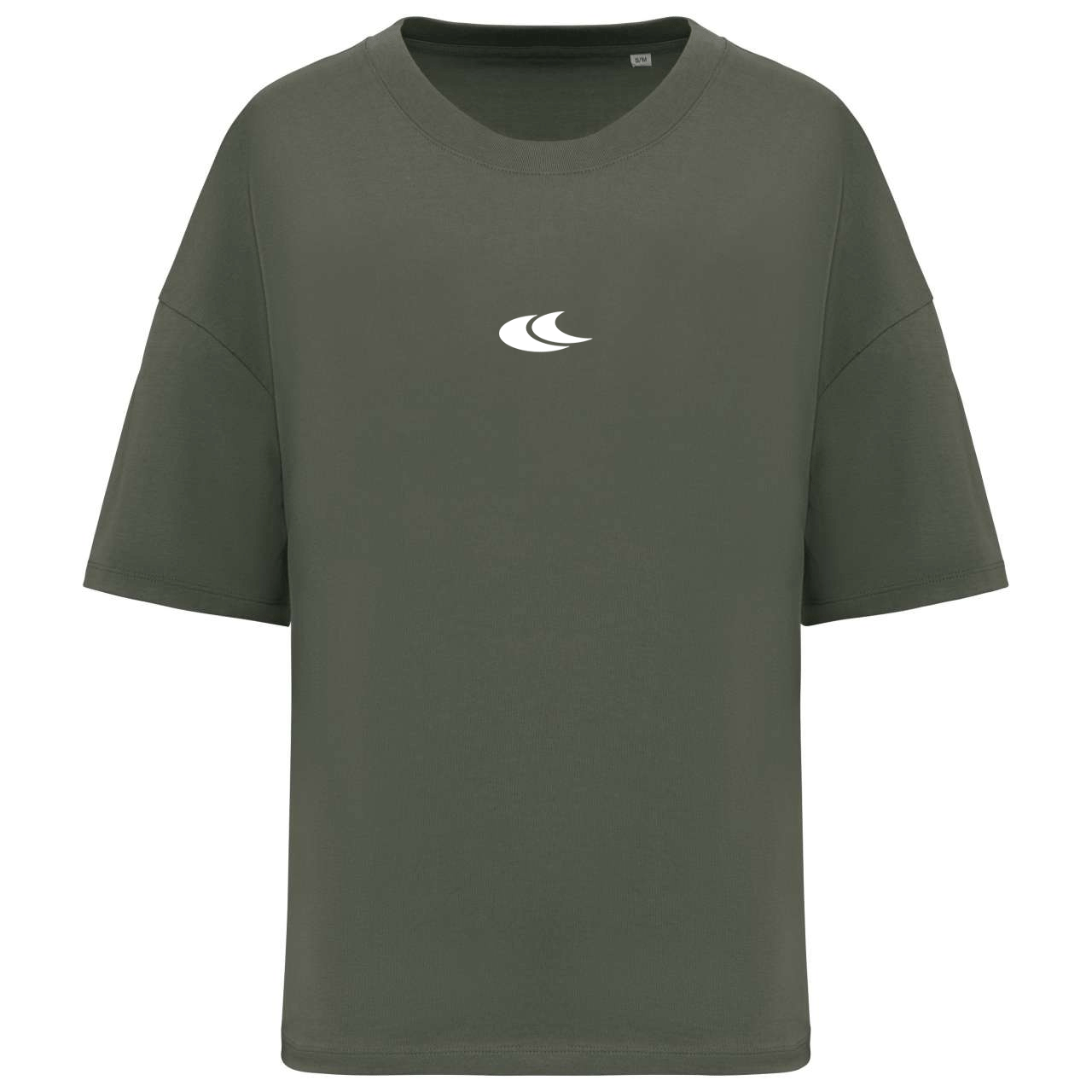 Női oversize póló bő szabással és ejtett vállakkal. Letisztult forma, strukturált esés és prémium anyaghasználat. Minimalista grafika, ami a mozgás és a flow érzetét hozza – minden felesleges zaj nélkül.