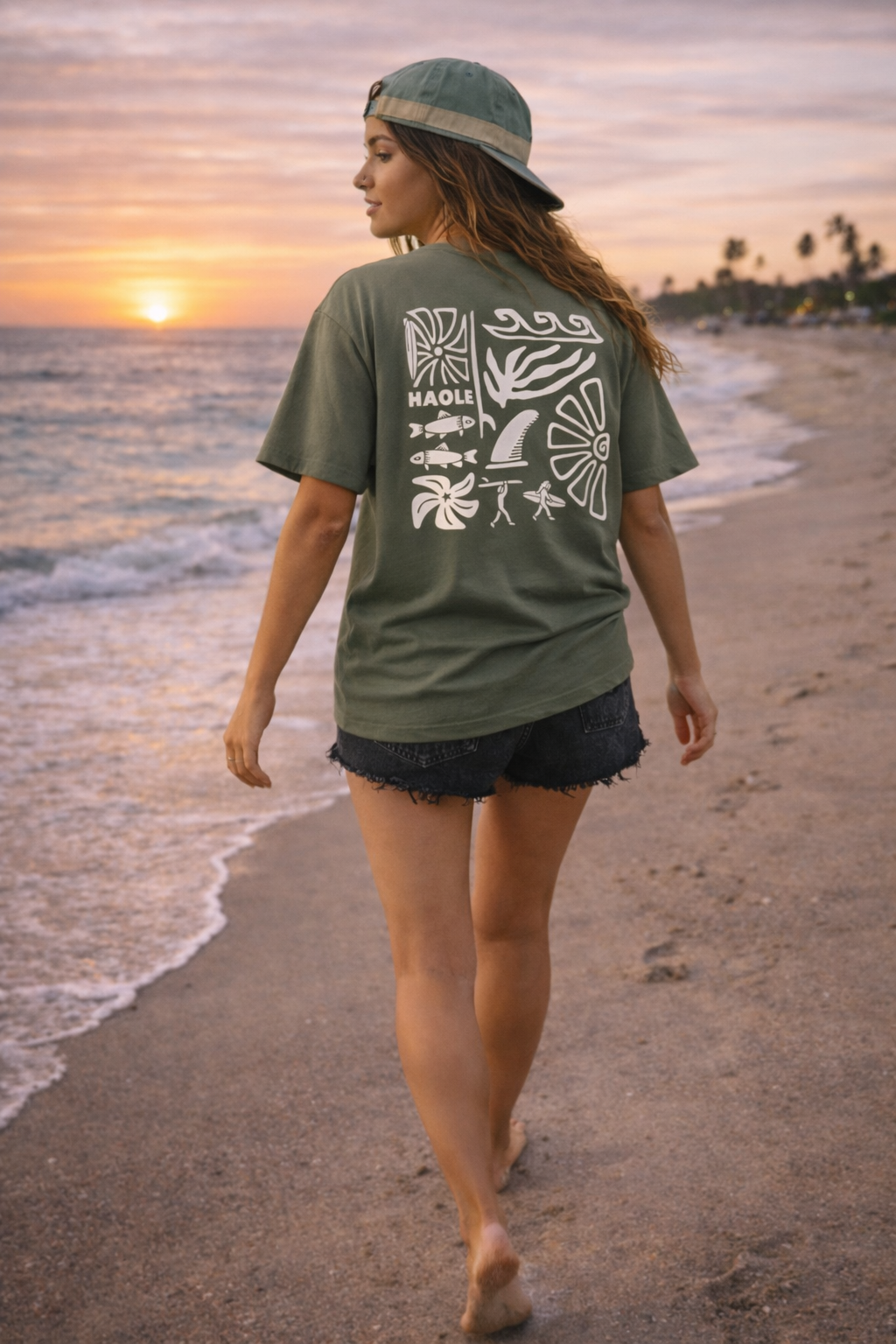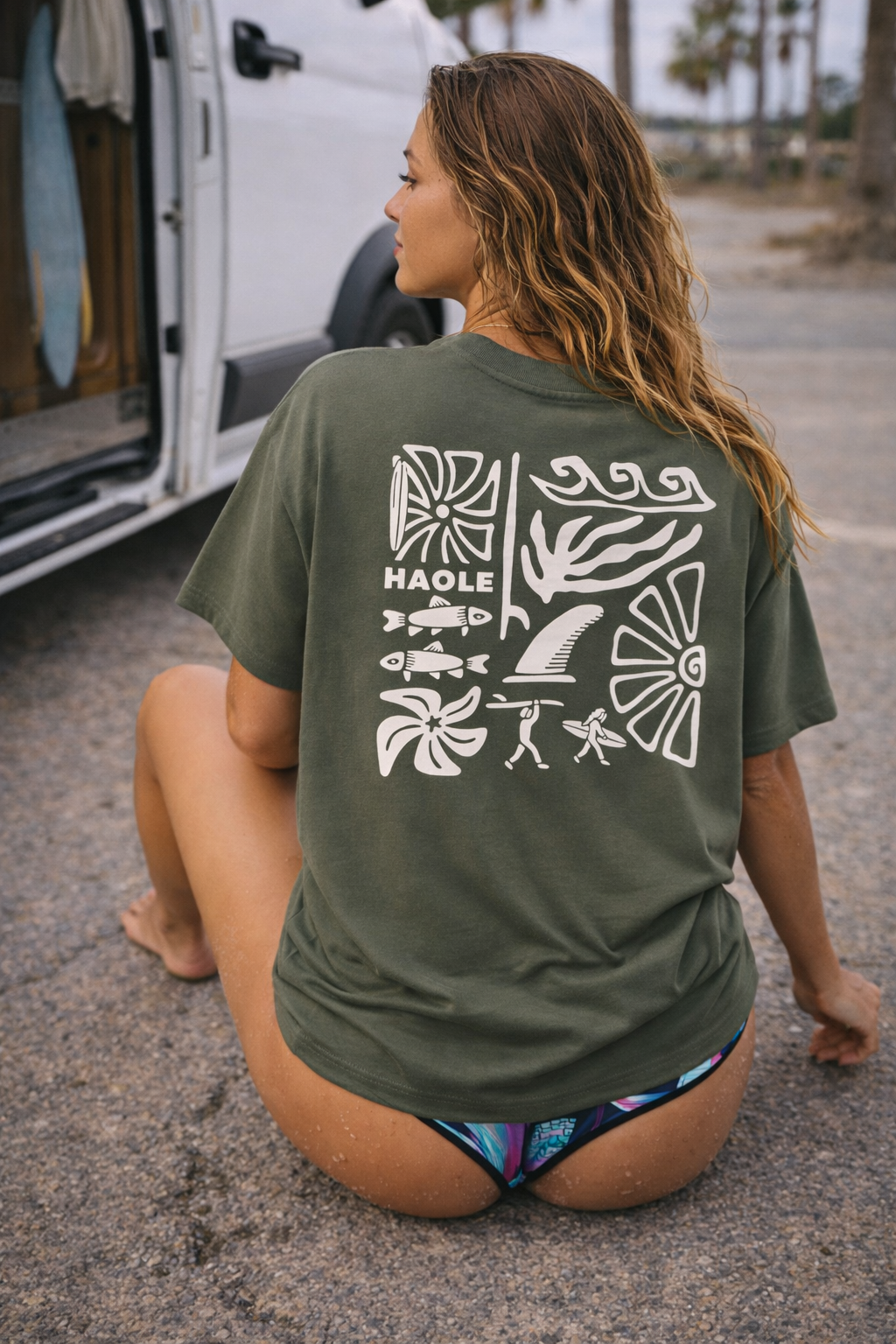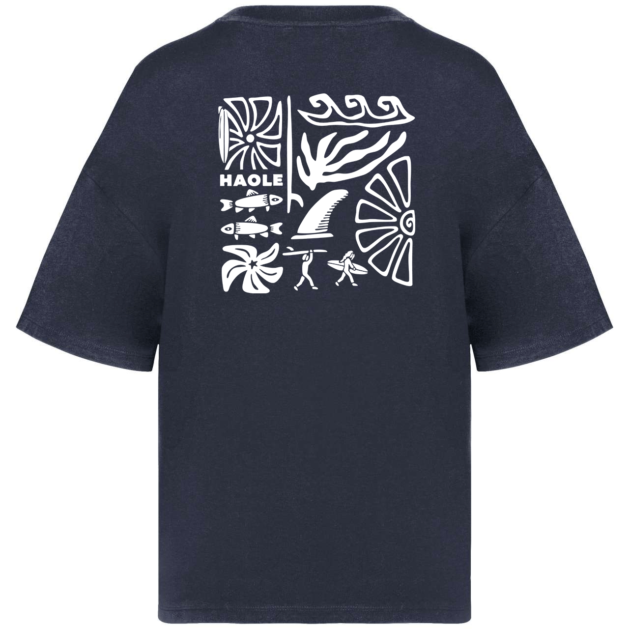 Női oversize póló bő szabással és ejtett vállakkal. Letisztult forma, strukturált esés és prémium anyaghasználat. Minimalista grafika, ami a mozgás és a flow érzetét hozza – minden felesleges zaj nélkül.