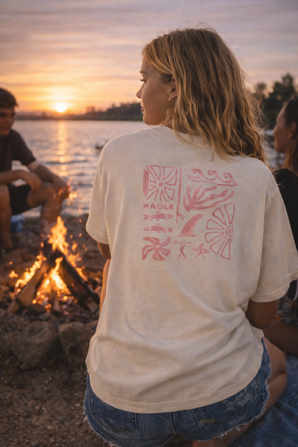 Az Ocean Vibe póló hátoldalán letisztult, flat design grafikák jelennek meg: kagylók, napfény, lassú hullámzás. Egy vizuális emlékeztető arra az állapotra, amikor nem sietsz sehová.