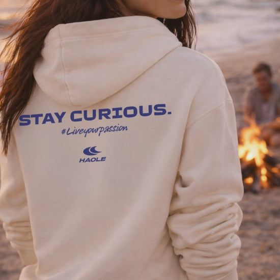 Puha, bolyhos belső oldala és laza szabása tökéletes társ hűvös naplementéknél, szeles tengerparti sétákhoz vagy egy hosszú szörfözés utáni lelassuláshoz. A letisztult előlapi Haole logó és a hátoldalon megjelenő „Stay Curious” üzenet finoman, mégis határozottan képviseli azt az életérzést, amit a Haole jelent.