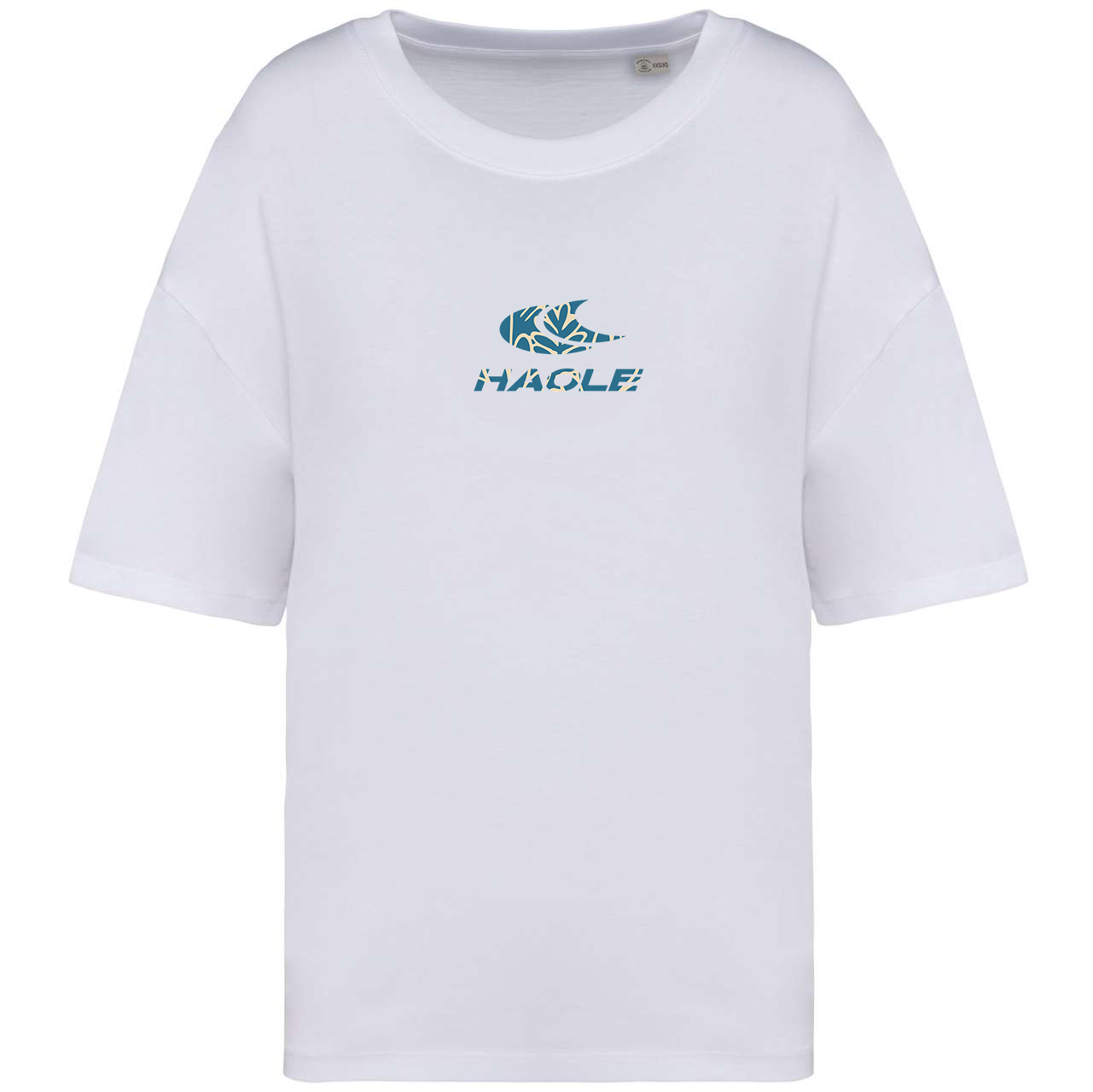 Női oversize póló bő szabással és ejtett vállakkal. Letisztult forma, strukturált esés és prémium anyaghasználat. Minimalista grafika, ami nem tol – csak irányt mutat.
